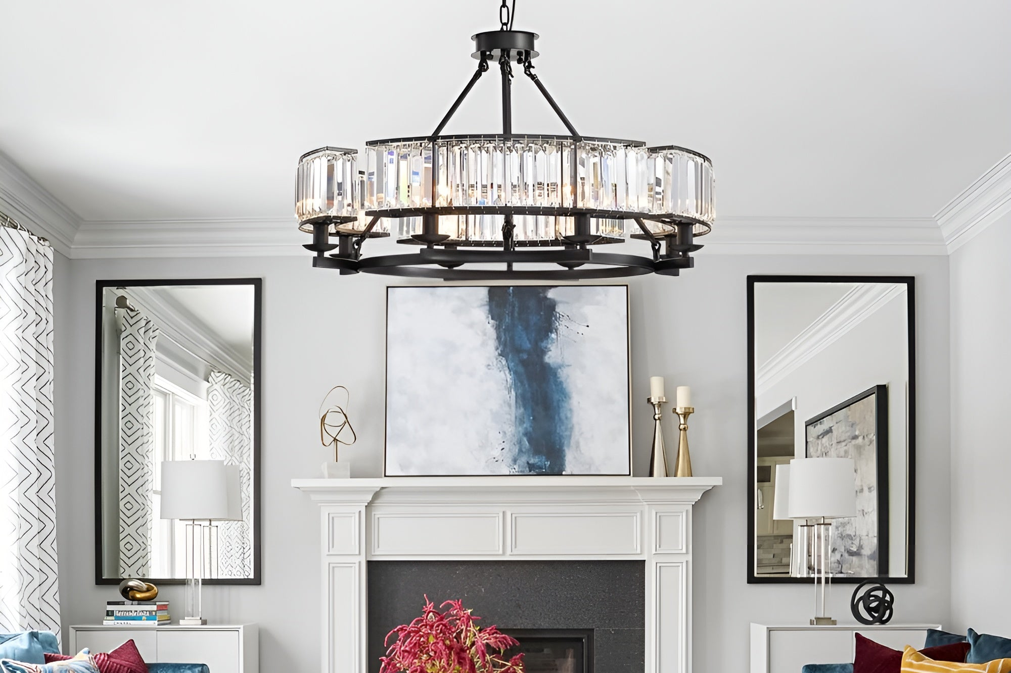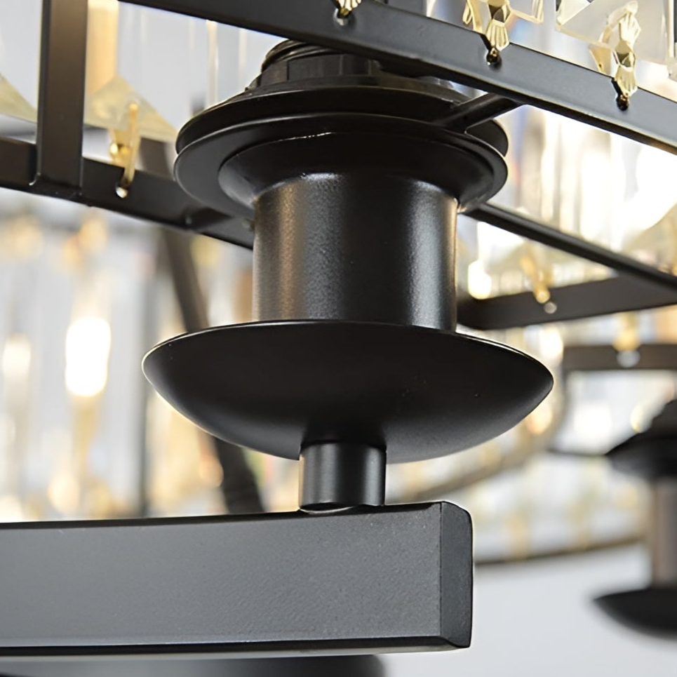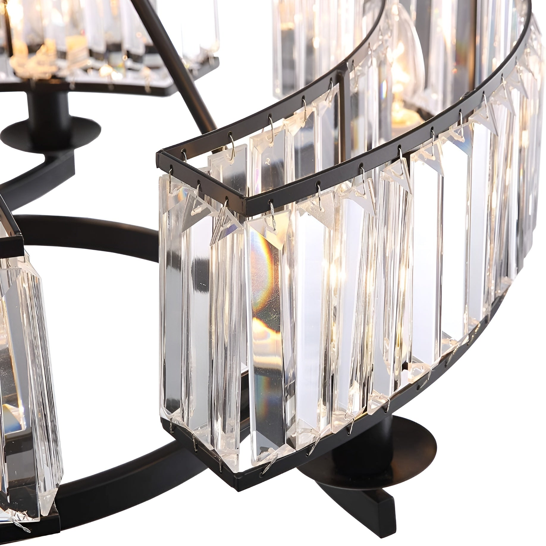 Elevate your space with the grandeur of the Asgard Vintage Crystal Chandelier, a stunning blend of timeless elegance and opulent craftsmanship. Featuring a bold circular frame in a rich dark finish, this chandelier is adorned with shimmering crystal prisms that beautifully reflect light to create a warm and inviting atmosphere.
