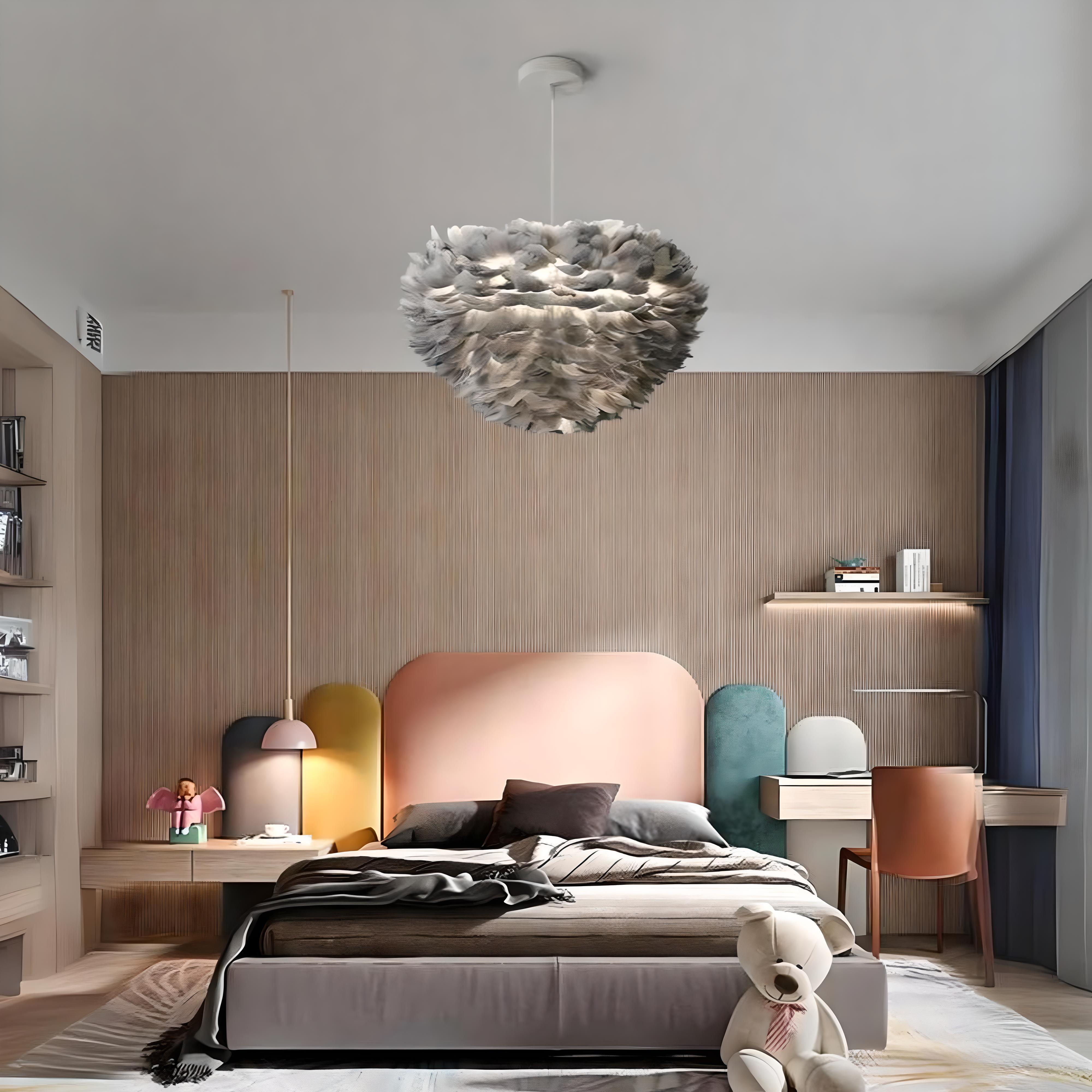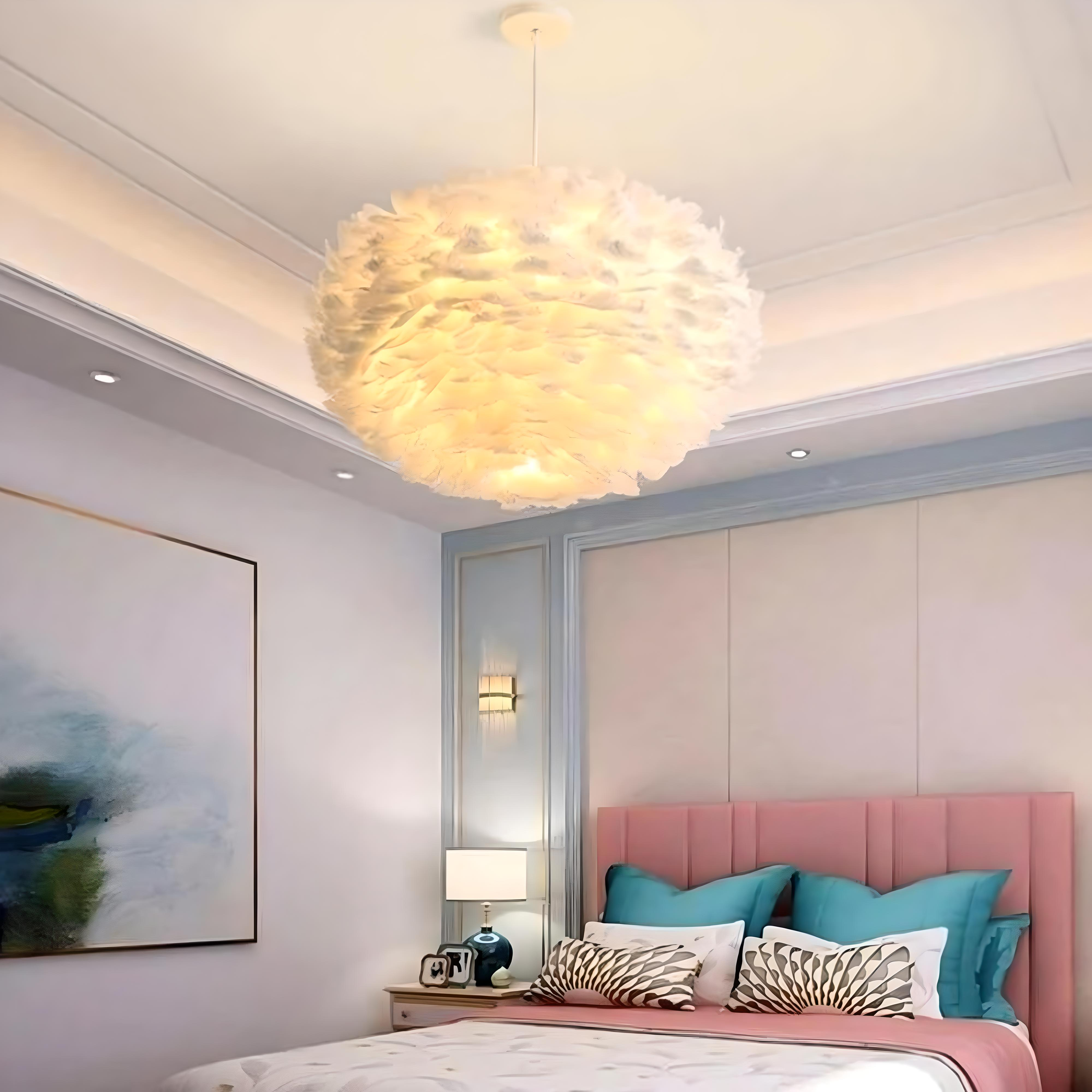 Transform your bedroom into a dreamy sanctuary with the Neustadt Feather Glow Chandelier Lamp, perfect for adding a soft, romantic ambiance. This chic, feather-inspired lamp creates a gentle glow, enveloping your space in cozy elegance, while its lightweight design is perfect for a modern, airy feel—ideal for unwinding after a long day.