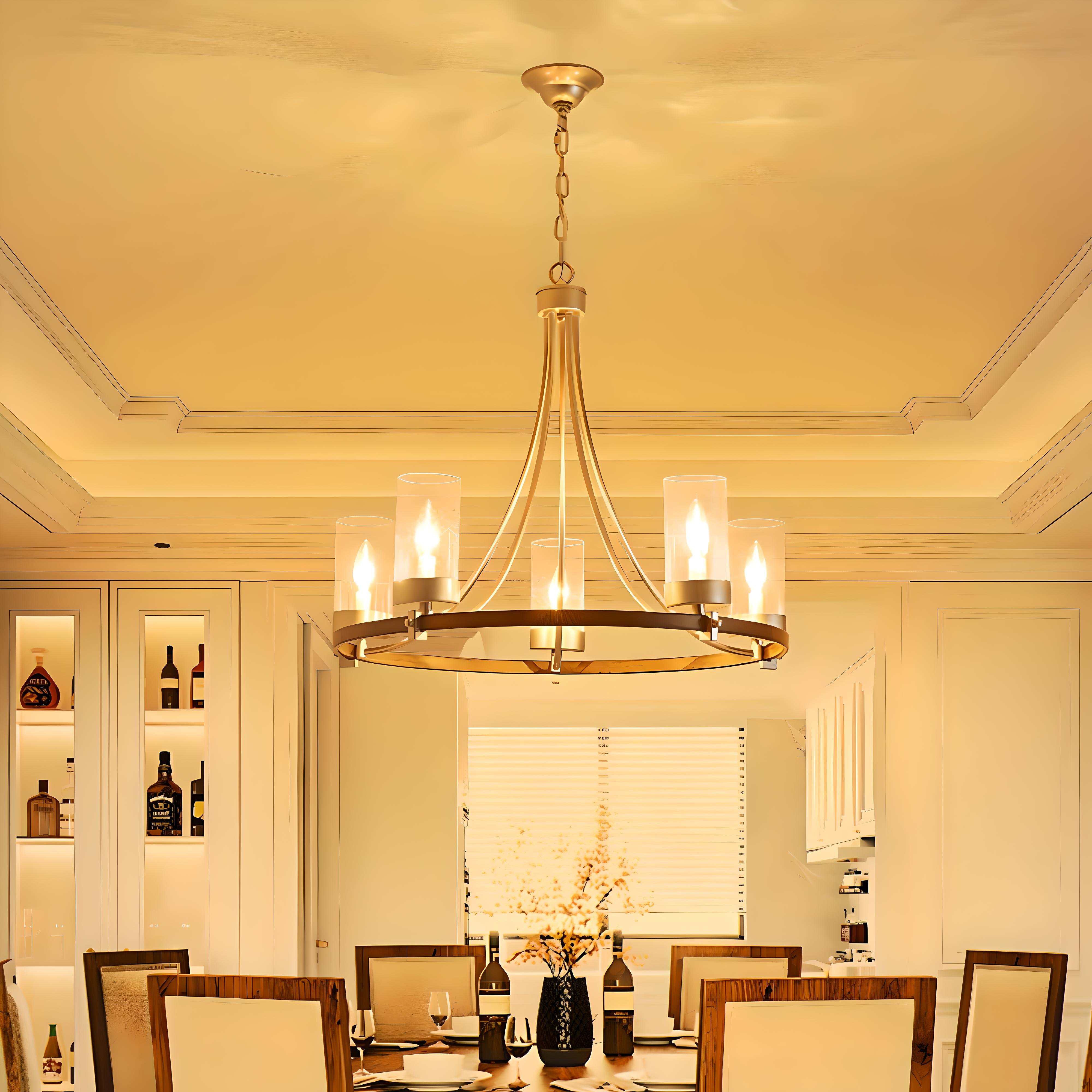 The Tegernsee Light Wagon Wheel Chandelier offers a seamless blend of rustic farmhouse charm and modern industrial aesthetics, perfect for the bold and adventurous. This chandelier is more than just lighting; it's a statement piece that transforms your dining room, kitchen island, or living space into an inviting focal point of style and comfort.