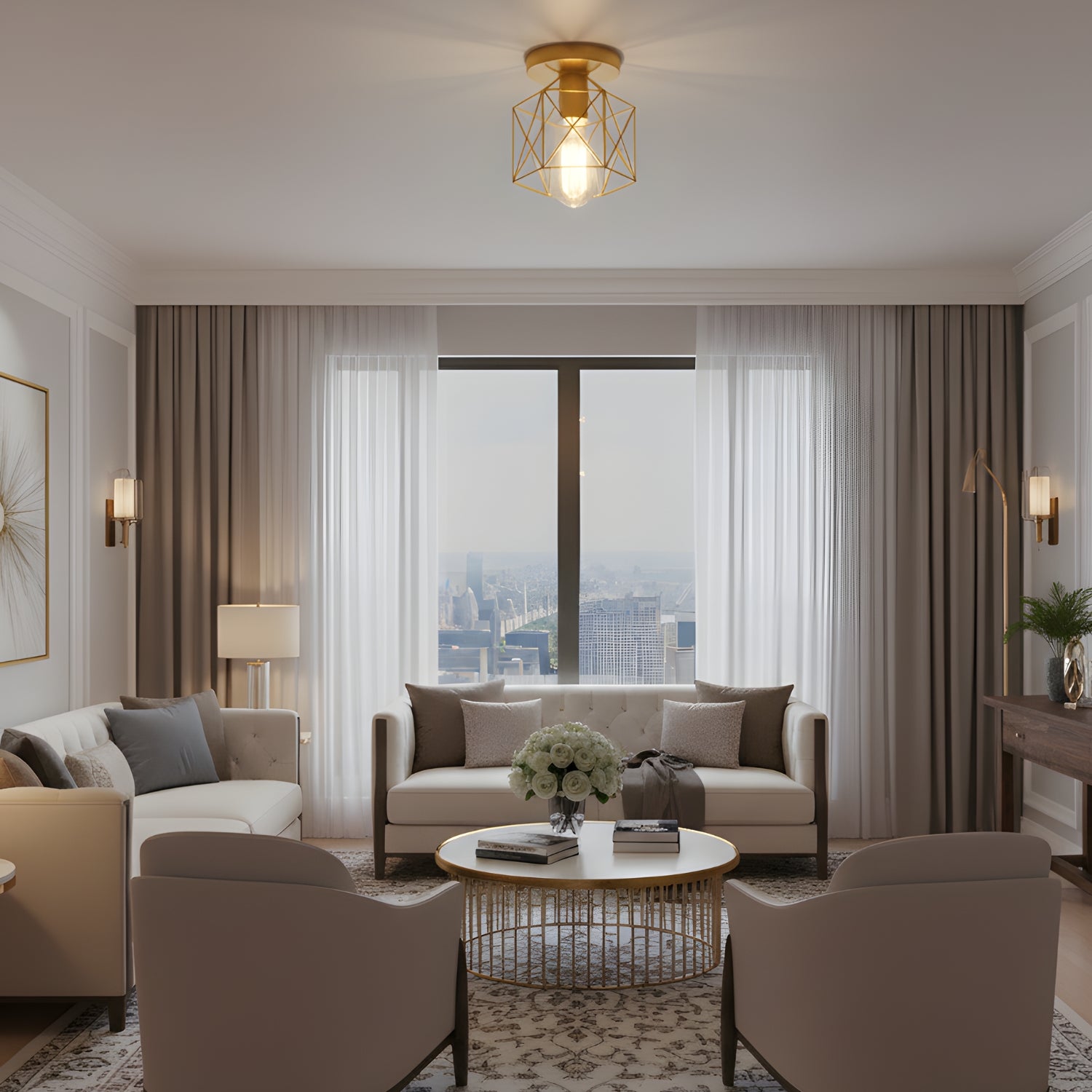 Bring timeless elegance and modern industrial flair to your space with the Velden Retro Ceiling Light. Designed with a geometric metal cage and a sleek matte finish, this fixture adds a perfect blend of minimalism and sophistication to any room - from cozy bedrooms to chic hallways and kitchens.